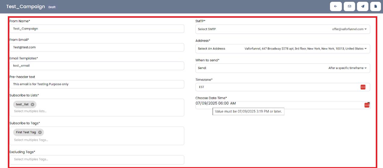 You can easily publish the campaign by selecting the appropriate options and clicking on the “Publish” button on the extreme right. A pop-up will appear—click “Publish” again to confirm.