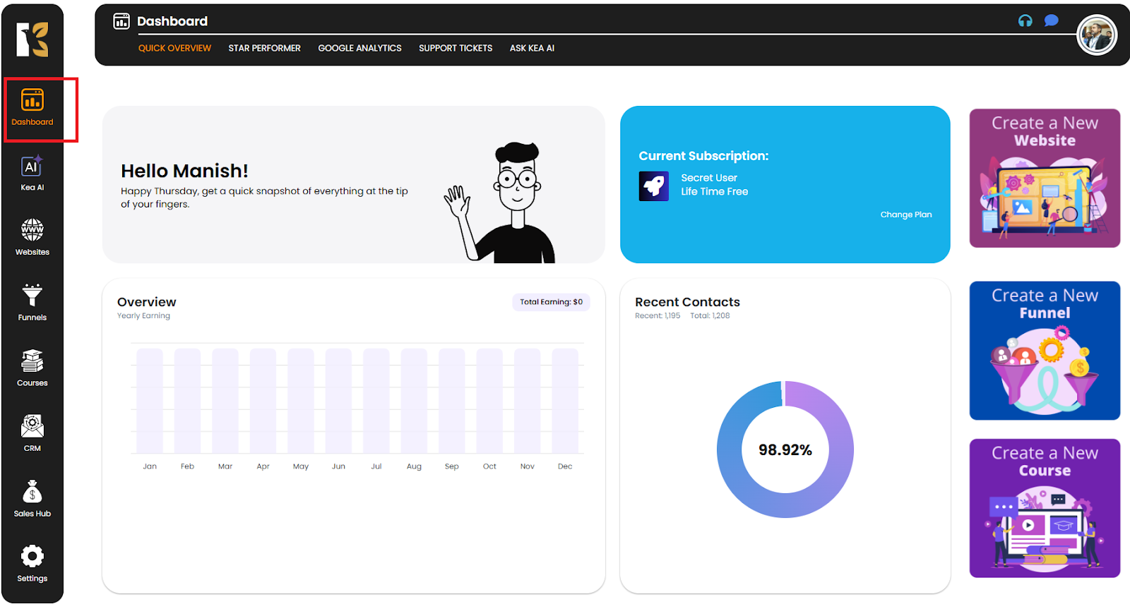 - Once logged in, you will land on the Main Dashboard.