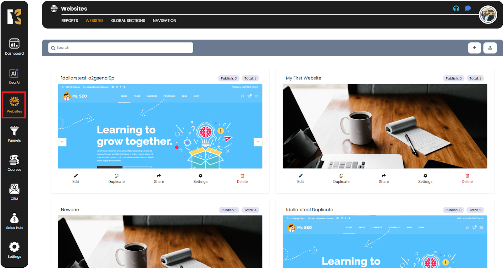 - This will redirect you to the Websites section, where you can see all the websites you’ve created.