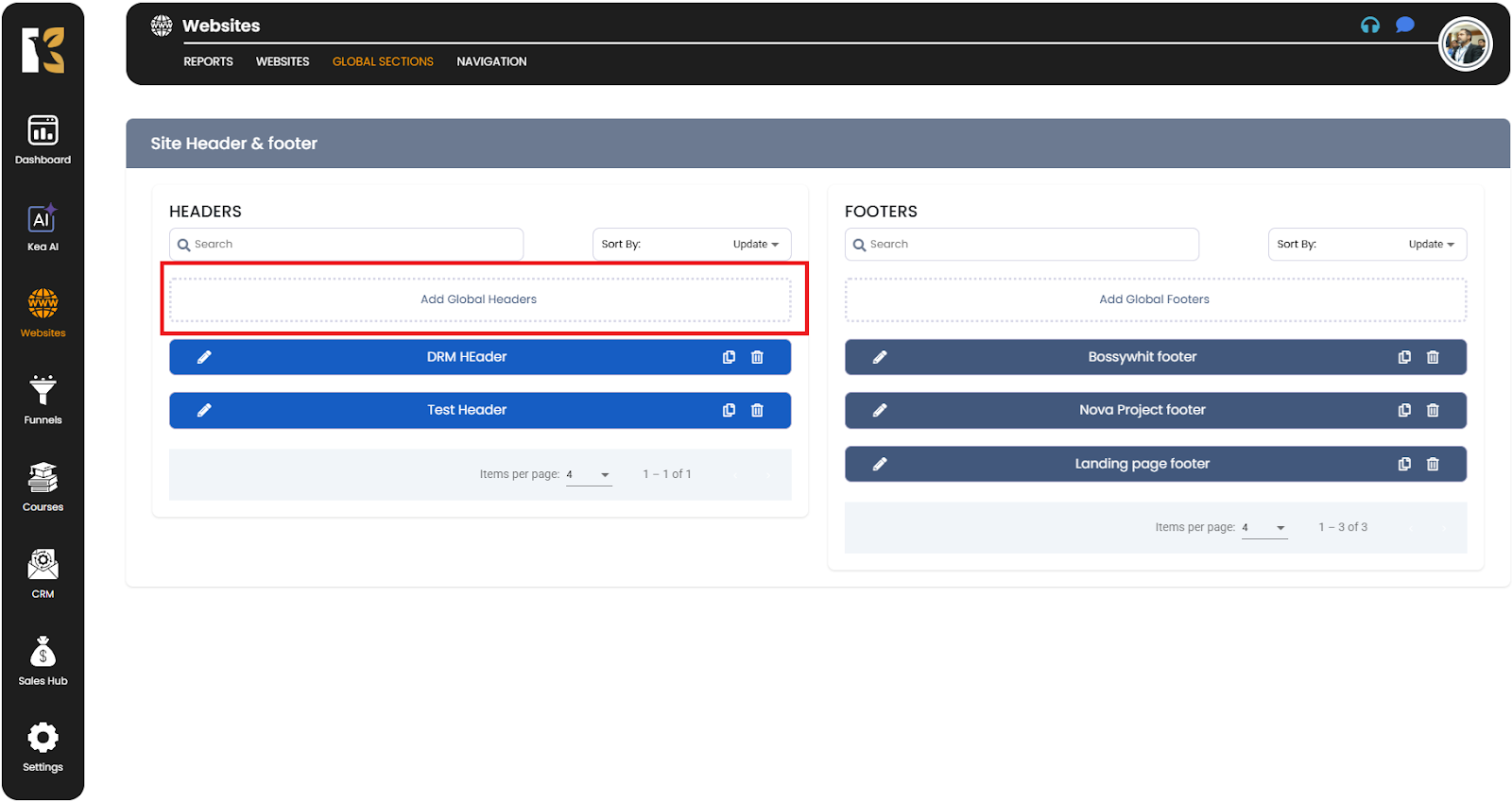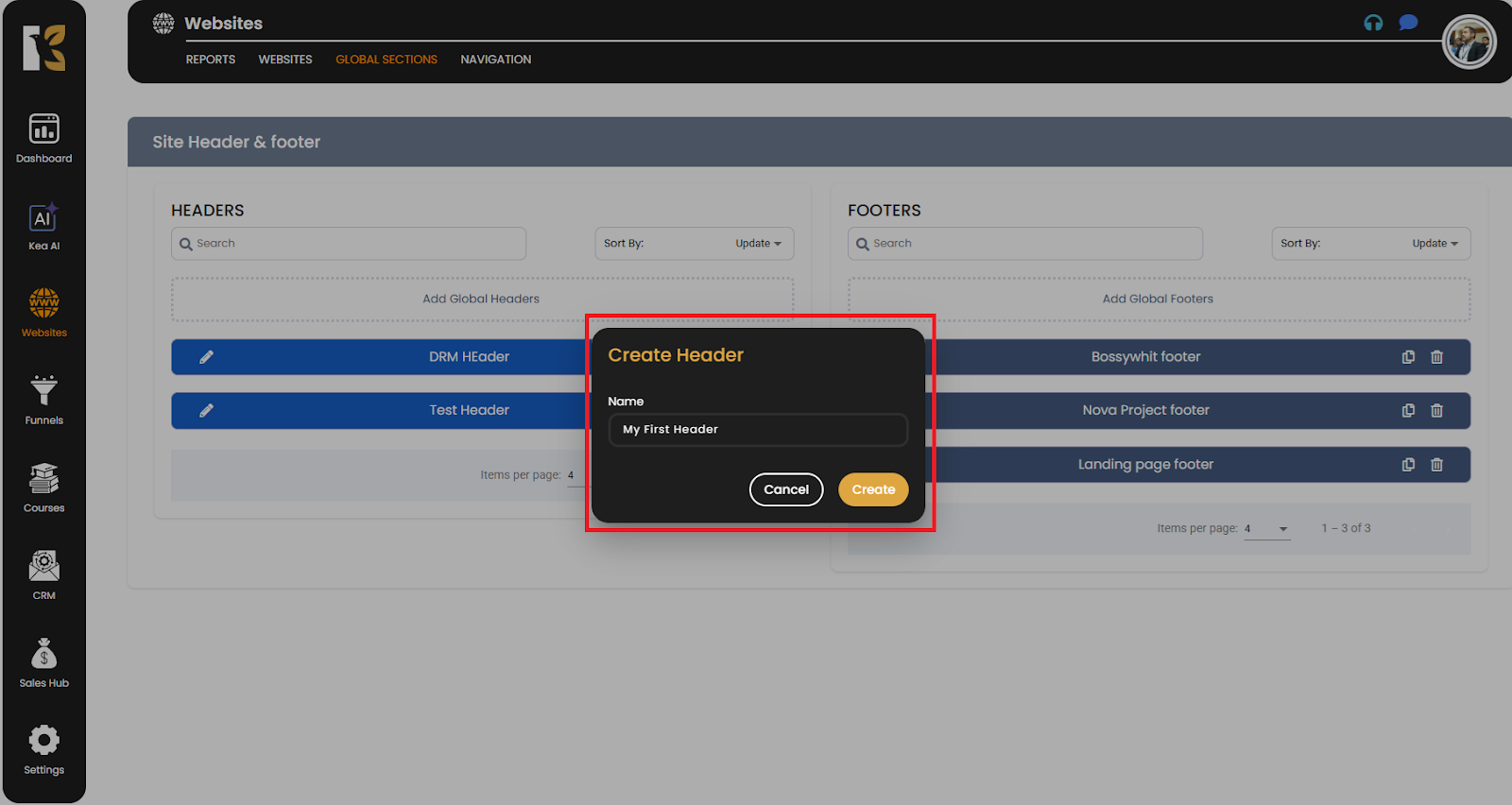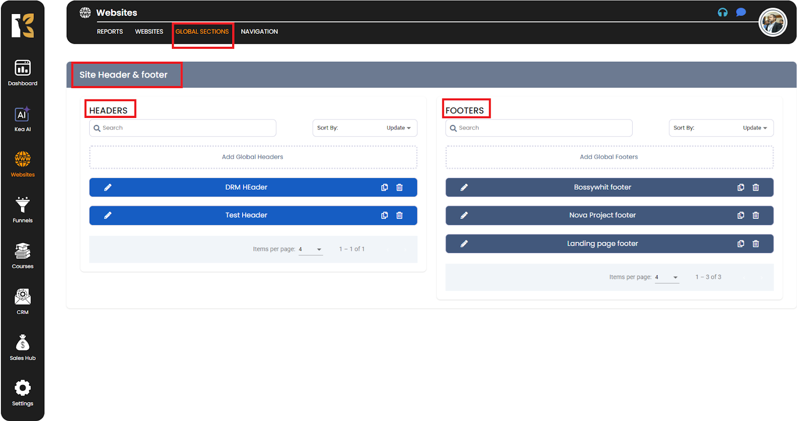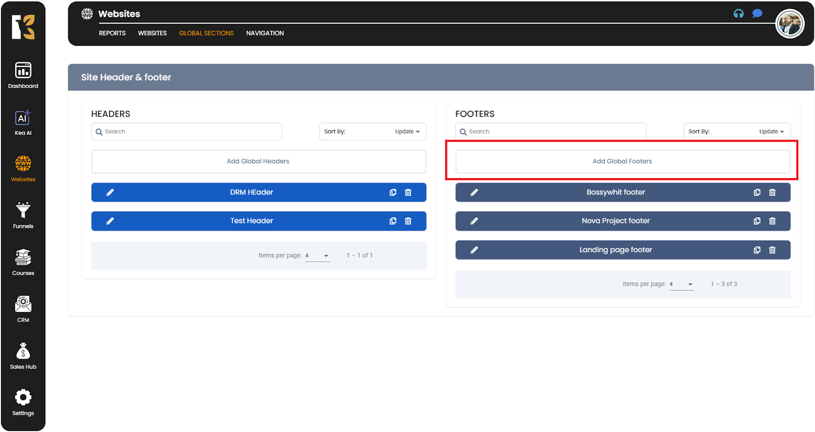 How to Add Global Headers & Footers in KeaBuilder