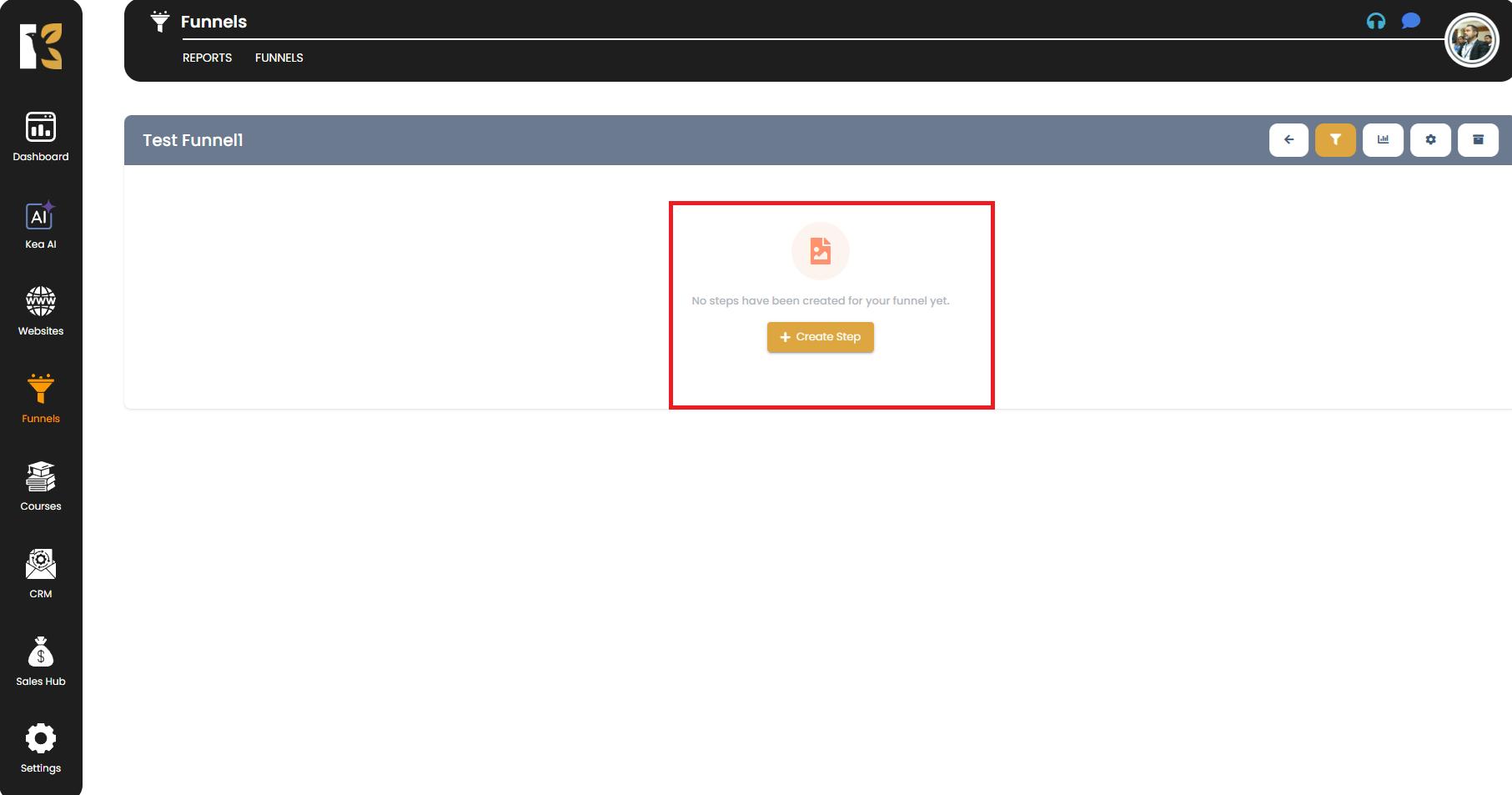 - Once the funnel is created, you will be redirected to the Funnel Steps page.