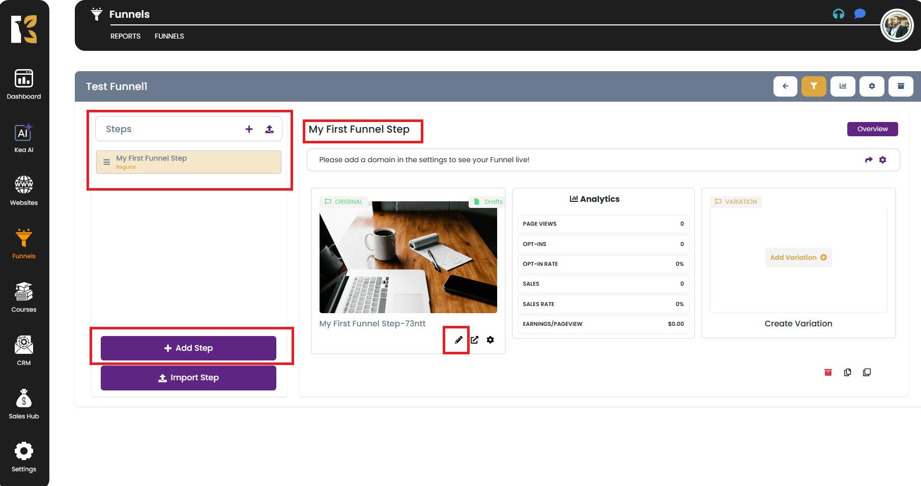 - Inside the KeaBuilder Funnel Builder, you can: