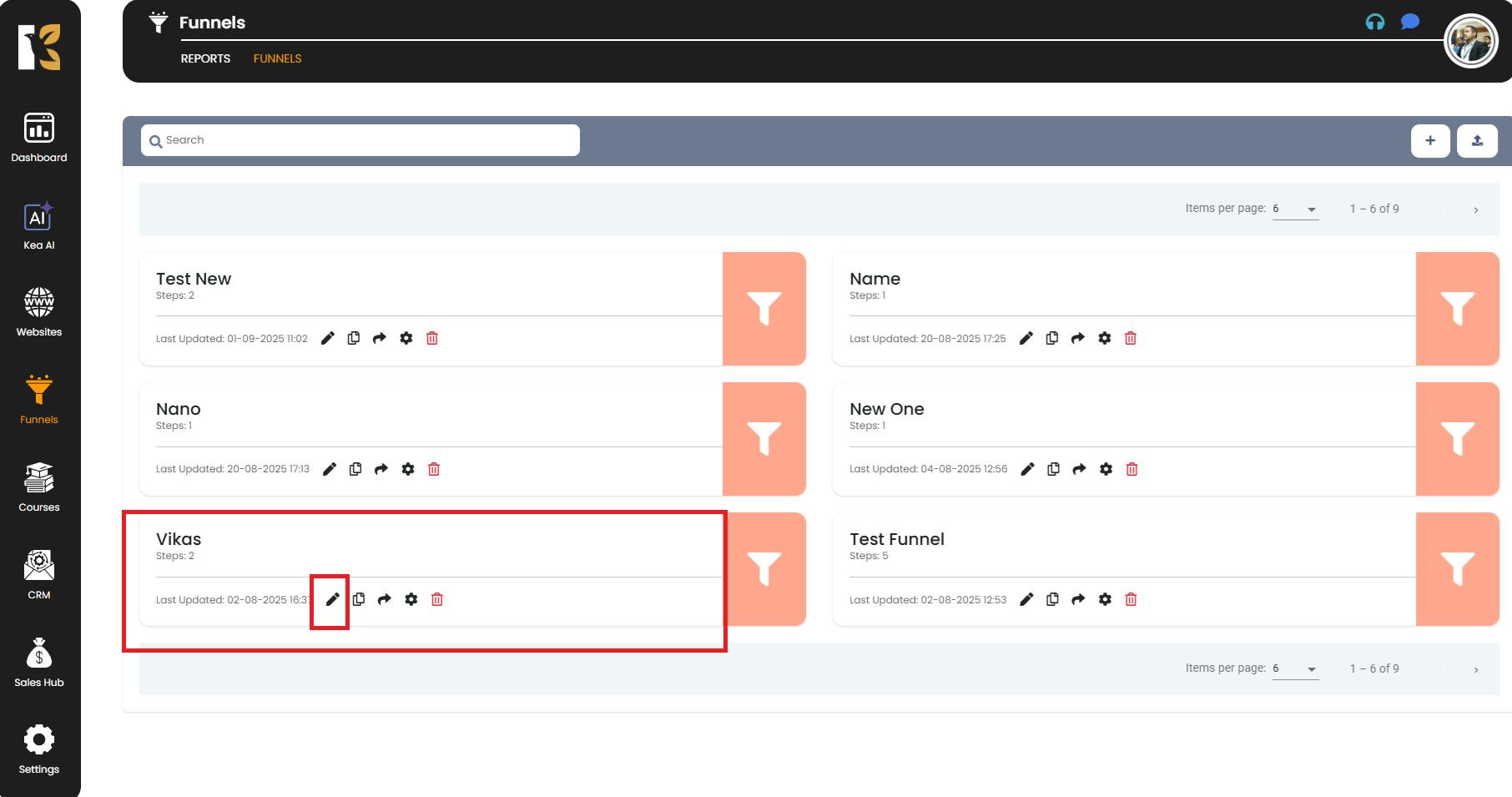 - After selecting the funnel, click on the “Edit” button or the Pencil icon.