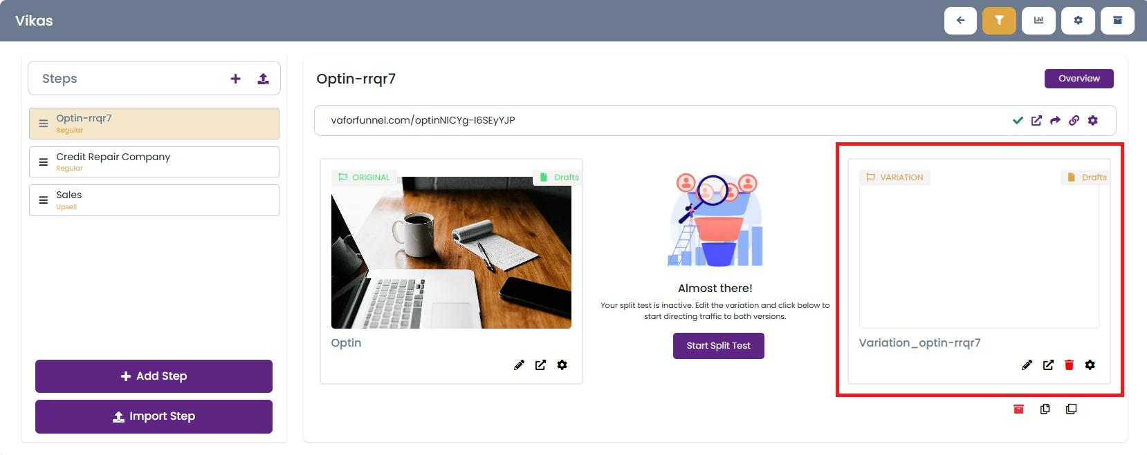 - Your new variation will now be added to the Funnel Steps list under the same funnel.
