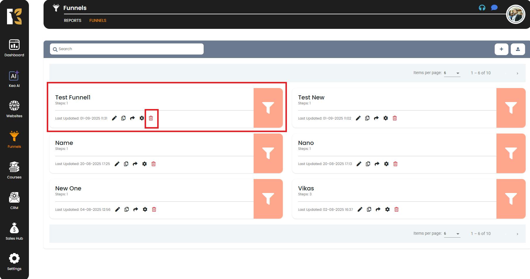 How to Delete a Funnel in KeaBuilder
