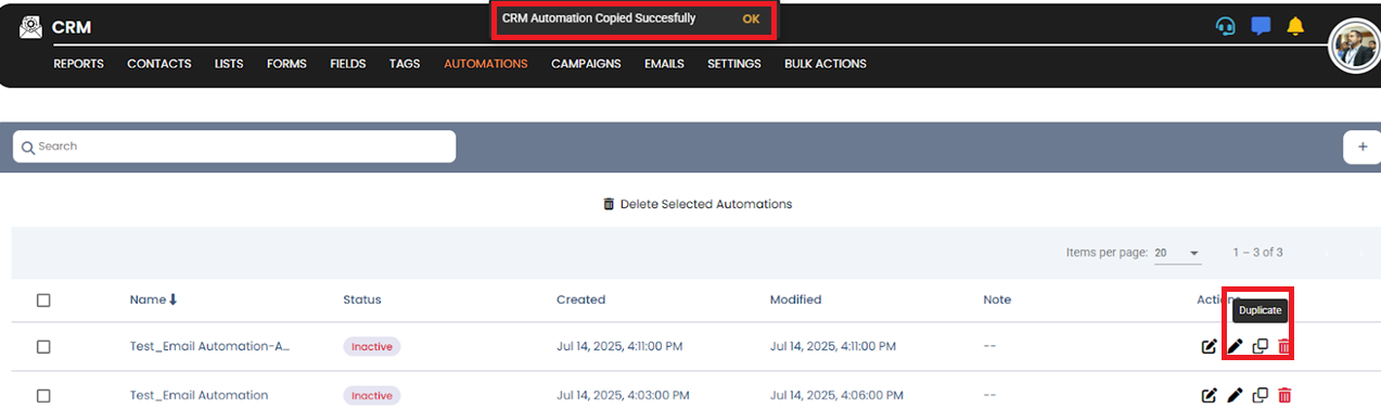 Your automation will be duplicated instantly, and a confirmation message will appear on the screen.