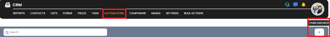 Click on the Automation button from the options available within the CRM panel.
