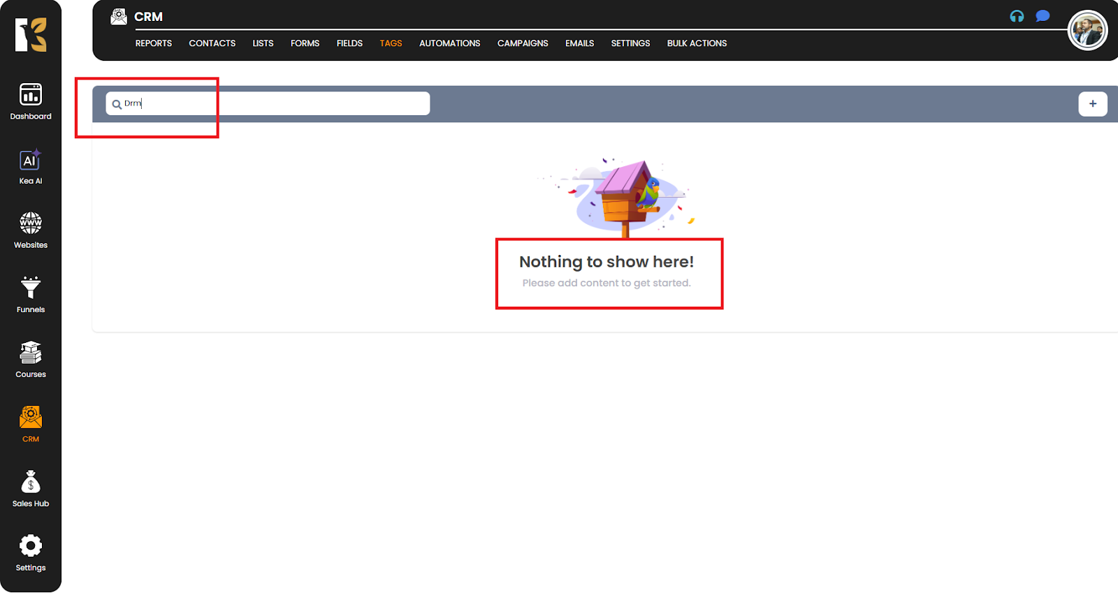 Tags in your CRM help you categorize, organize, and manage your leads or customers effectively. Searching for specific tags allows you to quickly locate relevant contact groups without manually scrolling through the entire list. Follow the detailed steps below to search for tags within your CRM using KeaBuilder: